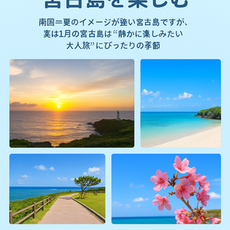 「南国=夏」のイメージが強い宮古島ですが、実は1月の宮古島は“静かに楽しみたい大人旅”にぴったりの季節です。